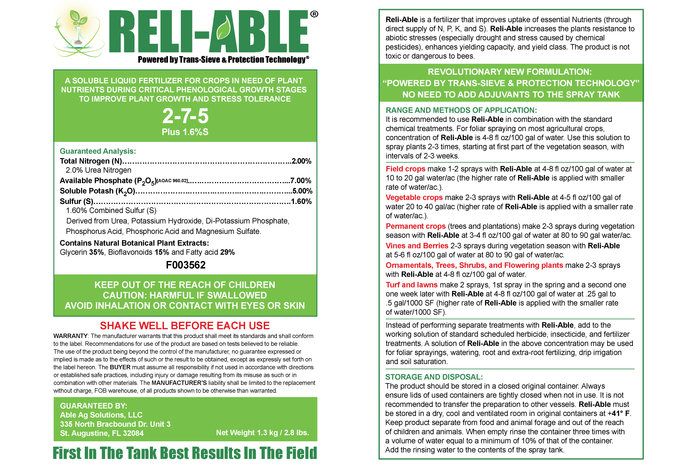 Choose Reli-Able® for a smarter, more effective approach to plant nutrition and stress management. Your crops deserve reliability and that starts with Reli-Able®.